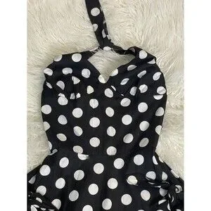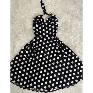 Women's Hell Bunny Black Polkadot Retro Pin Up Halter Dress EUC Size Small