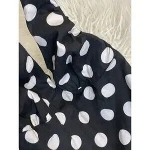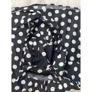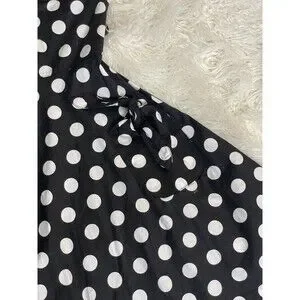 The Women's Hell Bunny Black Polka Dot Retro Pin Up Halter Dress in size Small is a charming and stylish piece of women's clothing. This knee-length dress features a flattering fit and flare style with a sleeveless design and a halter neckline. The classic black color and polka dot pattern give it a retro feel, perfect for a pin-up-inspired look. With a zip closure at the back, this dress is easy to put on and take off, making it a versatile addition to any woman's wardrobe.