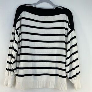Loft Striped Ballon Sleeve Knit Top, M