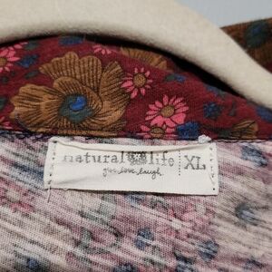 Pre-owned NATURAL LIFE Christa Knit Maxi Dress in a cranberry brown floral print. Soft 100% cotton knit fabric with button front, collar, chest pocket, and adjustable waist tie. Size XL. Light wash wear from normal use but overall very good condition with lots of life left. Washed, steamed, and ready to wear.