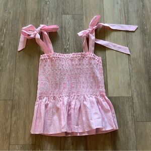 Lilly Pulitzer Rivera Smocked Seersucker Striped Havana Pink, Size Large *NWOT