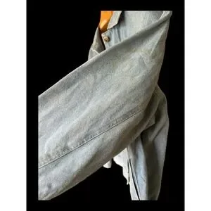 Stains on front and sleeve, seen close ups in pics. Would need some cleaning.