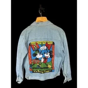 1980's Vintage Unisex Disney Mickey Mouse embroidered Medium Denim Jean Jacket
