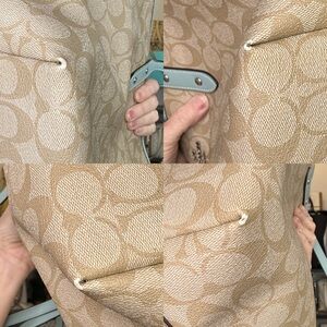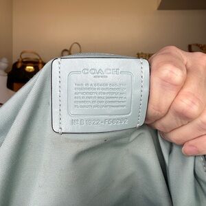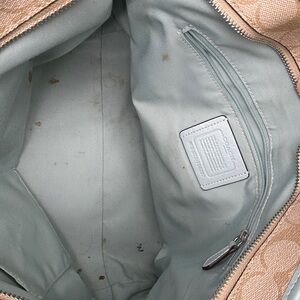 Classic Coach everyday tote in the signature “C” jacquard canvas with soft powder blue leather trim and silver-tone hardware. Lightweight, structured, and a great rehab piece for resale or personal use.