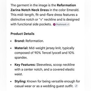 Reformation Zarina Notch Neck Dress in Emerald Green Sleeveless Size Small