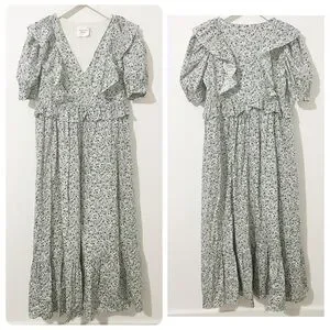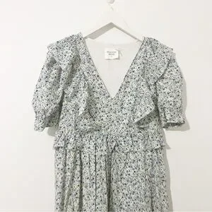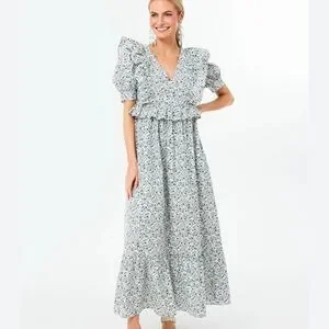 NWT Hyacinth House Tuckernuck Blue Floral Puff Sleeve Meadow Midi Dress Medium