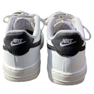 The product is a Nike Air Force 1 Kids Sneaker in a size 1Y, featuring the iconic swoosh design in white. Made with synthetic upper material, this athletic shoe is part of the Nike Air Force product line, known for its style and comfort. Suitable for both boys and girls, this unisex kids' shoe is a trendy and versatile choice for young sneaker enthusiasts.