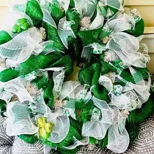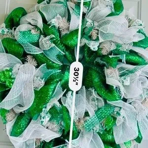 Brighten your home with this festive green and white ST PATRICKS DAY wreath. Perfect for adding a touch of elegance to your seasonal decor. THIS IS A CUSTOM MADE HUGE GORGEOUS, SPARKLY, HIGHEST QUALITY 29” WREATH. MATERIALS ARE SAFE FOR INTERIOR OR EXTERIOR DISPLAY. Not brand NEW, but def IN IMMACULATE CONDITION. Retail was 250! Listed now at $175. Get yours now, I ONLY have 1! My neighbors suffered from serious porch envy when I hang this! 😂 ☘️💚