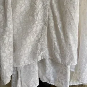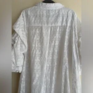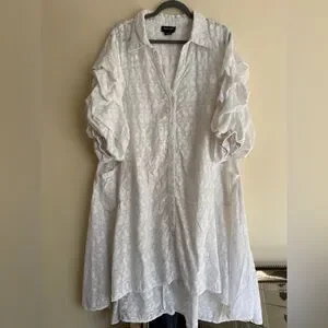 Beautiful Step In Style white embroidered cotton shirt dress / tunic with a relaxed boho feel. Lightweight 100% cotton with an all-over embroidered paisley pattern that gives it texture and a soft vintage aesthetic.
