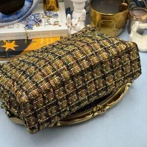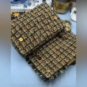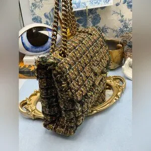 🆕 KURT GEIGER LONDON 🧿 NWOT Large Kensington X Tweed Shoulder Bag, Black Brown