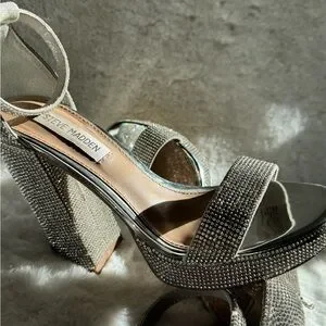 Steve Madden Rhinestone Platform Heels Sparkle Party Prom Sandals Size 6.5 M