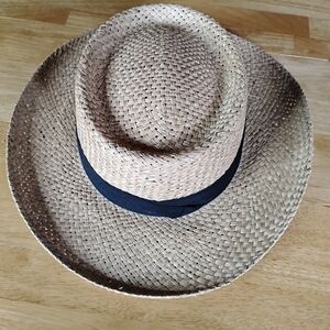 Stylish straw hat by Ashworth. Features a dark band for a classic look. Ideal for sunny days.
