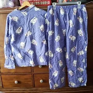 Character Women's Purple Pajama Set with Fun Polar Bear Print