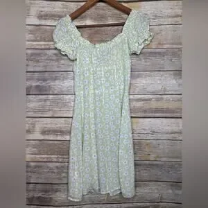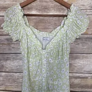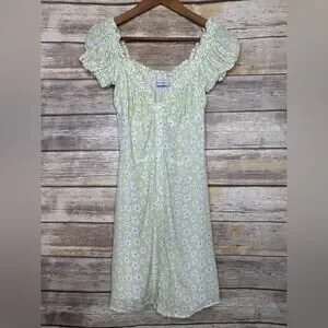 With Jean Isabella Daisy Dress M green pretty mini floral button front. So cute in excellent condition very feminine has a great cut for the bust line.