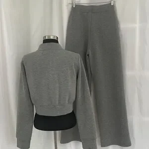 Commense Gray set. Jacket L, PTP 21, L 18, - Lounge pants S, Waist 15, Inseam 30