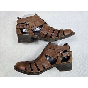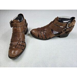 Treasure & Bond Womens Size 6.5 Faux Leather Strappy Ankle Boots Stacked Heel