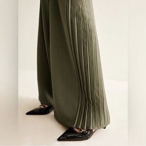 Commense olive Green Wide Leg Pants Side Pleated High Waisted Trousers Medium