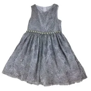 RARE EDITIONS Silver Tulle Lace Floral Princess Formal Layered Dress size 6X