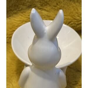 White Bunny Jewelry Holder Trinket Dish Easter Spring Ceramic Decor Cupcake Egg
