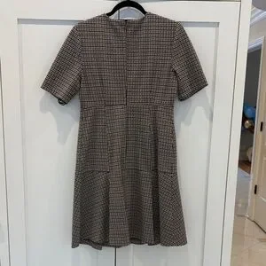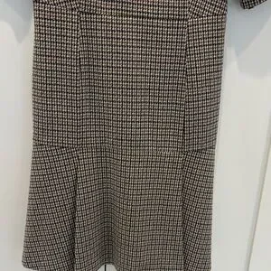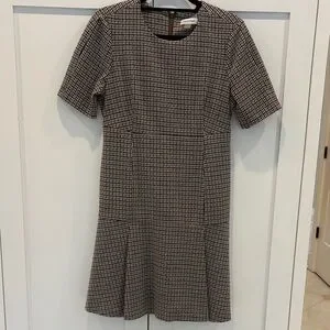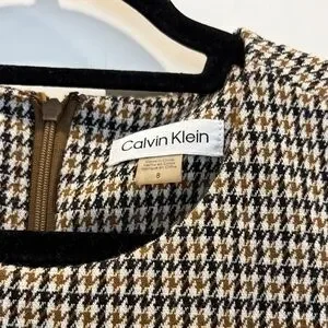 Calvin Klein 8 Elegant brown beige and White Houndstooth Dress