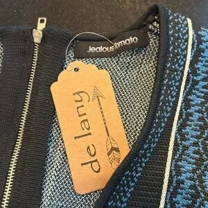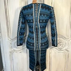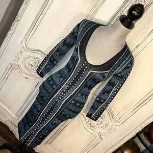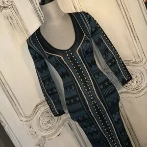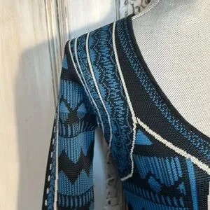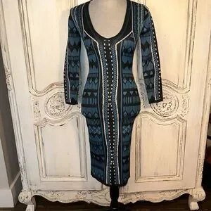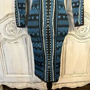 Jealous Tomato Geo Graphic Long Sleeve Deep V Neck Body con Knit Dress Size S