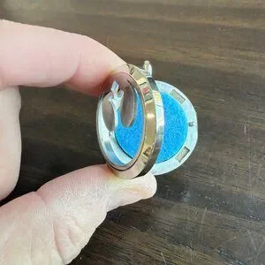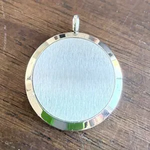 Size 30mm with interchangeable felt pads, to change the color of the background OR add a pinch of fragrance oil.
