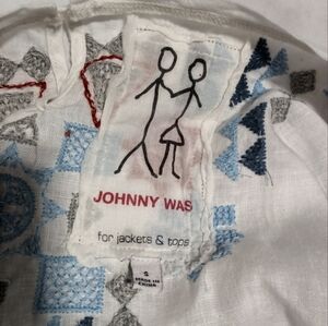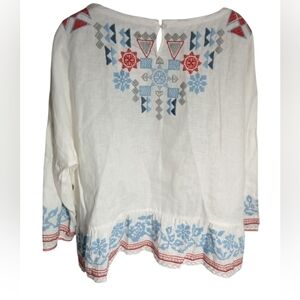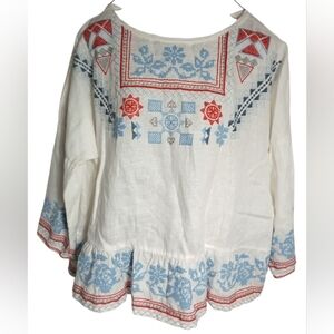 Johnny Was For Jacket & Tops Linen Artsy Top Embroidered Relaxed Fit Small