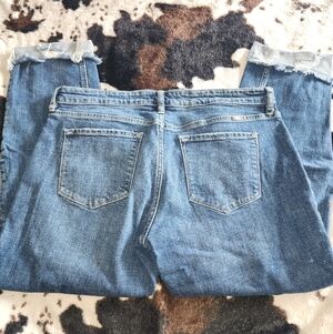 Dark blue denim with whisker details and moderate distress for a lived-in look that's perfect for dressing up or down. Russel Mid Rise Boyfriend sits right at the natural waistline as they relax down the leg, creating a loose-fitting silhouette. Made with comfort-stretch denim that maintains its shape even after multiple wears. Features a classic five-pocket design, single-button front, and zip-fly closure. Finished with gold-colored hardware.