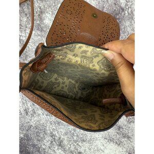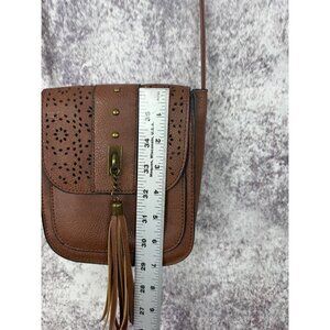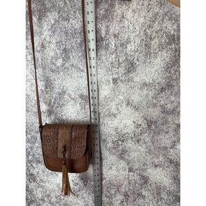 Boho Faux Leather Purse Women S Brown laser cut Crossbody Shoulder Bag Tassel