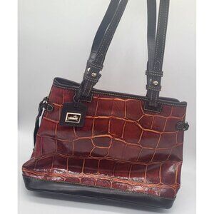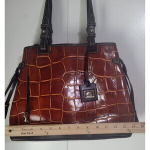 Dooney & Bourke Croco Embossed Leather Double Strap Tassel Bag Cognac