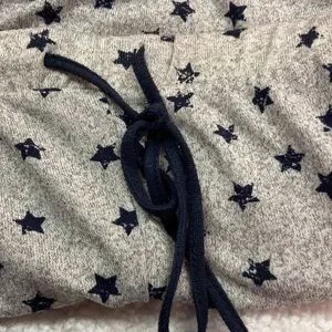 Lucky Brand loungewear pajama pants. Stars with navy stripe down sides. Elastic pull-on. Drawstring. Polyester/spandex. Size XL