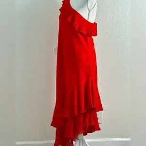 Mango Women’s Red One-Shoulder Asymmetric Ruffled Dress Size 10