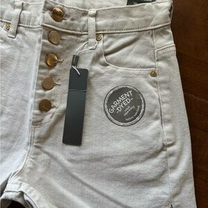 Tractr Moonstruck Cream Gray High Rise Button Fly Thigh Slit Denim Shorts 00/24