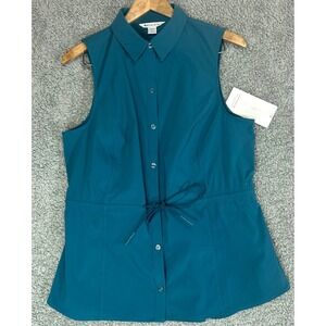 Athleta Levitate Poplin Tank Women L Teal Blue NWT Activewear Outdoor Utility