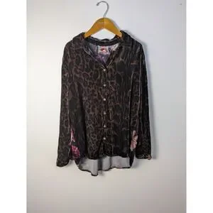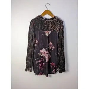 Johnny Was Velvet Leopard & Floral Long Sleeve Button Up Shirt Top M READ