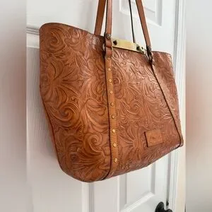 Patricia Nash | Benvenuto Embroidered Signature Leather Tote Bag Purse Tan