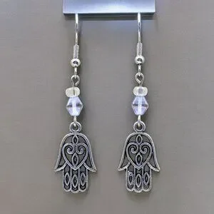 These Handmade Hamsa Earrings feature a simple, elegant design accented with a light blue crystal, giving them a subtle touch of color and meaning. Lightweight and easy to wear, they’re perfect for everyday use while still feeling special.
