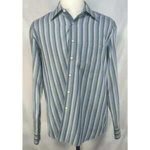 R&G 100% Cotton Striped Button Up Shirt Blue Mens L