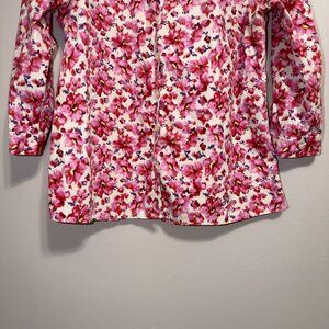 Classic and polished, this Lands' End floral button-up blouse is a timeless piece that can easily be styled for both work and everyday wear. The vibrant pink floral print adds a feminine touch while the structured silhouette keeps the look refined and versatile.