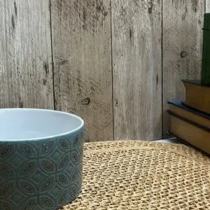 The soft teal glaze and modern pattern give this piece a clean, spa-inspired aesthetic that works beautifully in kitchens, coffee bars, or bathroom storage.