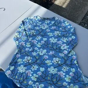 Gudrun Sjoden Blue Floral cherry blossoms organic cotton Long Sleeve Top