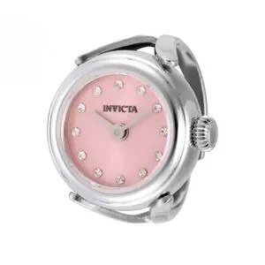 This eye-catching Invicta watch from the Mini collection is powered by an accurate Quartz movement, with a steel case. Its face is decorated by a pink, metal dial, and protected by a sturdy Mineral Crystal. A none, band completes this timepiece that can resist water for up to 30 m