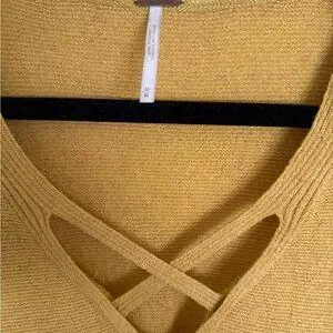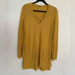 Free People Mustard Criss Cross Tunic Sweater Top