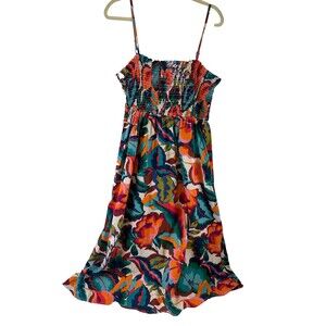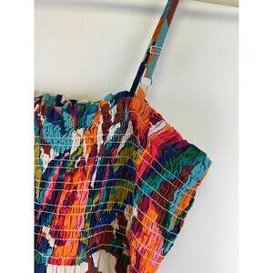 Maurices Bright Floral Smocked Poplin Midi Dress Multicolored Pockets Womens XXL.