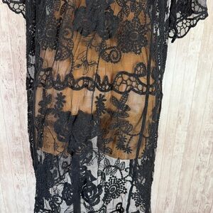 Shyanne black mesh embroidered kimono jacket. Cotton/nylon blend. No size on tag.