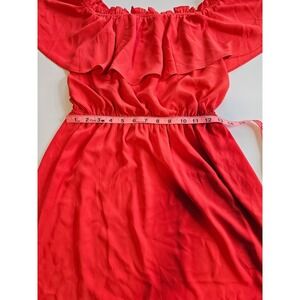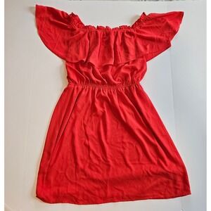 Express Off The Shoulder Dress Womens Small Red Ruffle Elastic Waist Mini Dress
