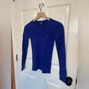 Ralph Lauren Sport Vintage Long Sleeve Crewneck T-Shirt in Royal Blue Size XS