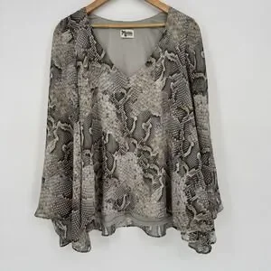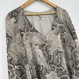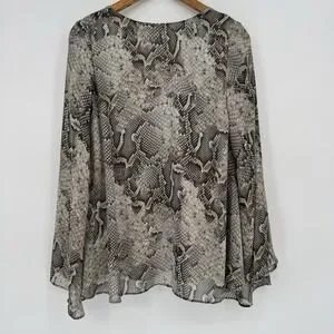 Show Me Your Mumu Brown Snake Print Tunic Blouse V-Neck Flowy Bell Sleeve Med