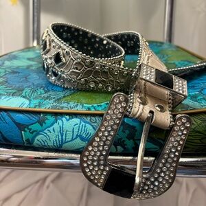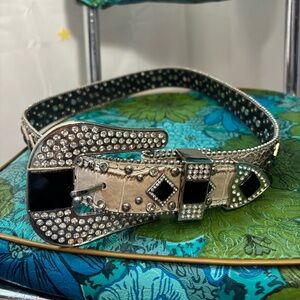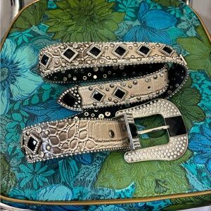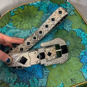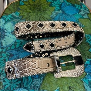 Y2K Party Girl Western Snakeskin Faux Leather Rhinestone Studded Belt 33-38”
