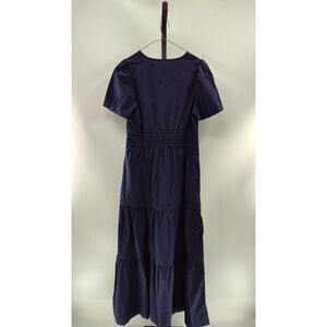 Quince 100% Organic Cotton Poplin Tiered Maxi Dress Navy Basic Sleeved S